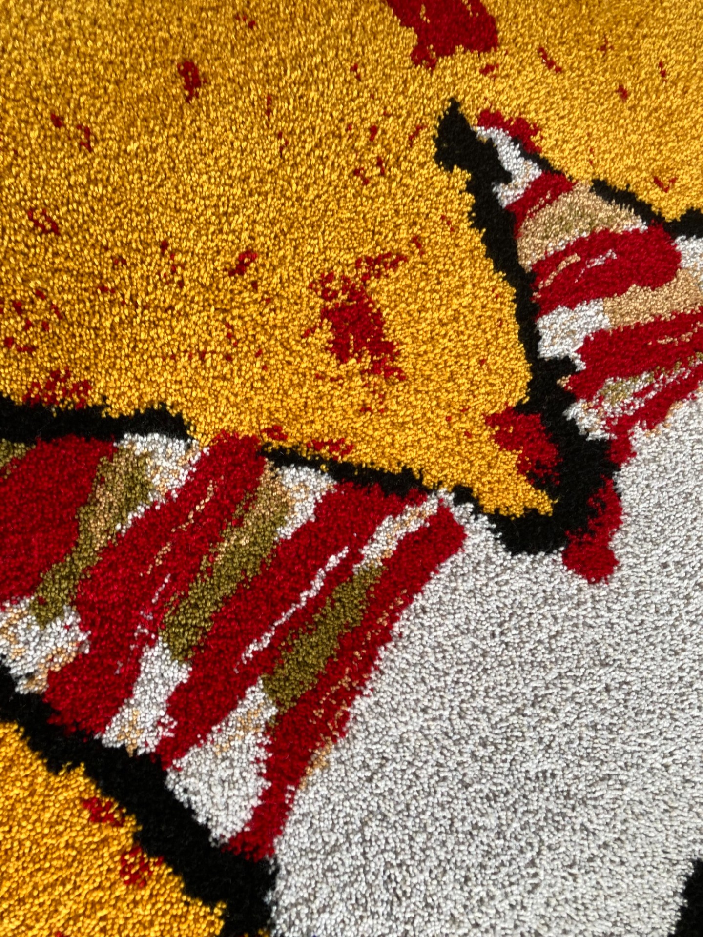 À l’invitation de Kit Graas, le duo LUGI réinterprète une œuvre de Gust Graas en tapis tufté. En transposant gestes et couleurs de la peinture vers la laine, la pièce fait vibrer autrement la lumière et la douceur au cœur de l’univers de Graas, en dialogue direct avec l’original présenté à côté.