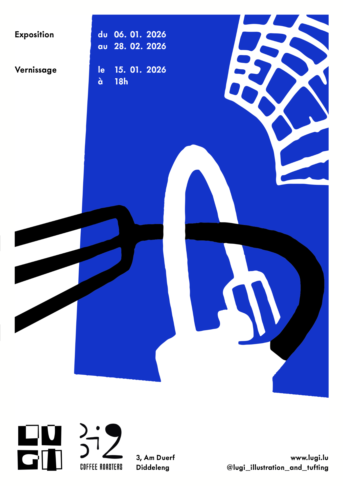 Le duo LUGI investit à nouveau le Biz avec une série de tapis tuftés colorés et de formes suspendues inspirées des cafetières Bialetti. Entre murs et plafond, leurs œuvres jouent avec les textures, les silhouettes et la lumière du café; une installation pensée pour accompagner le quotidien des visiteurs, entre une tasse et une conversation.