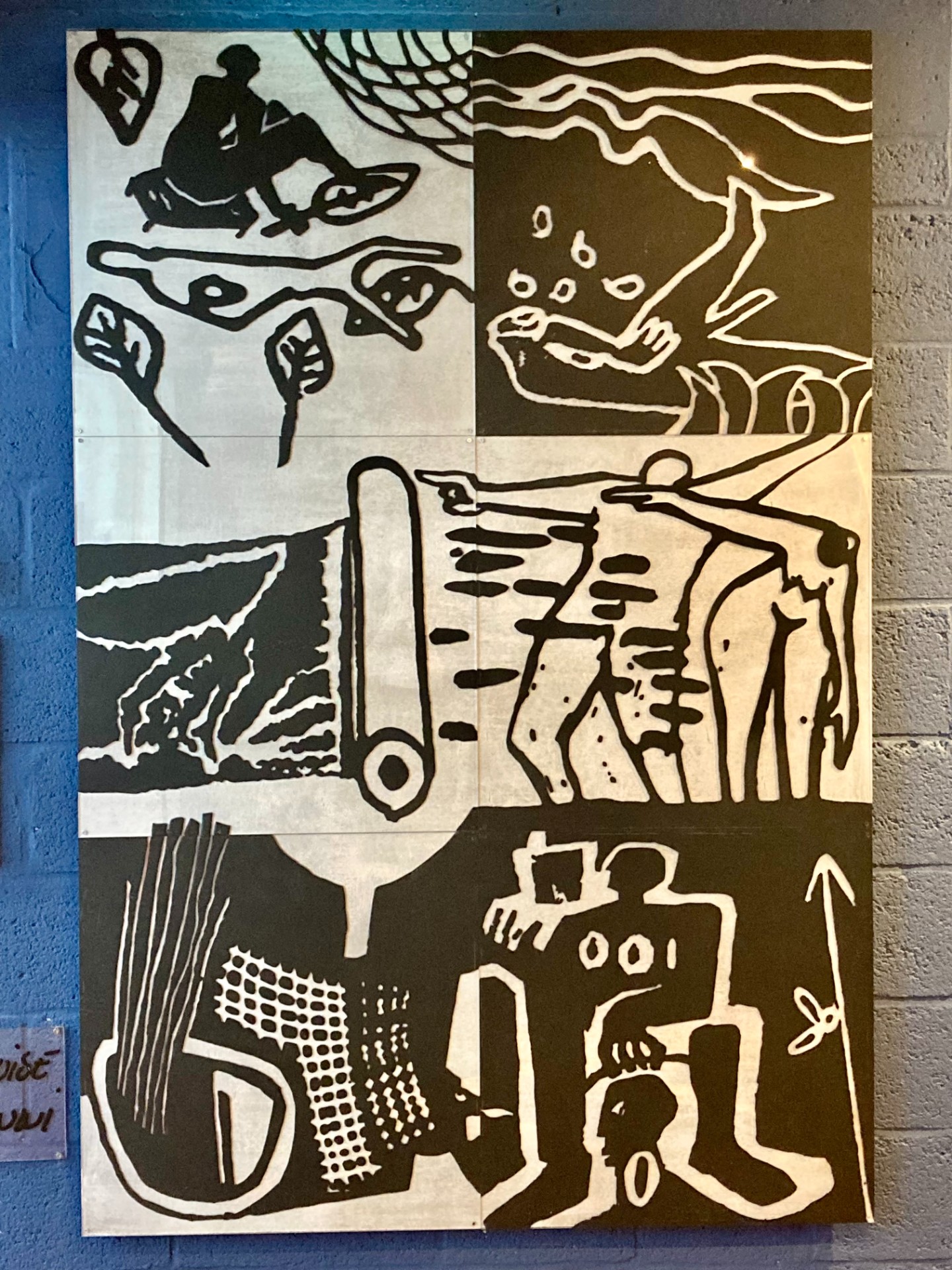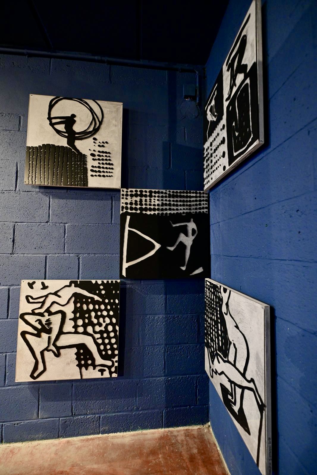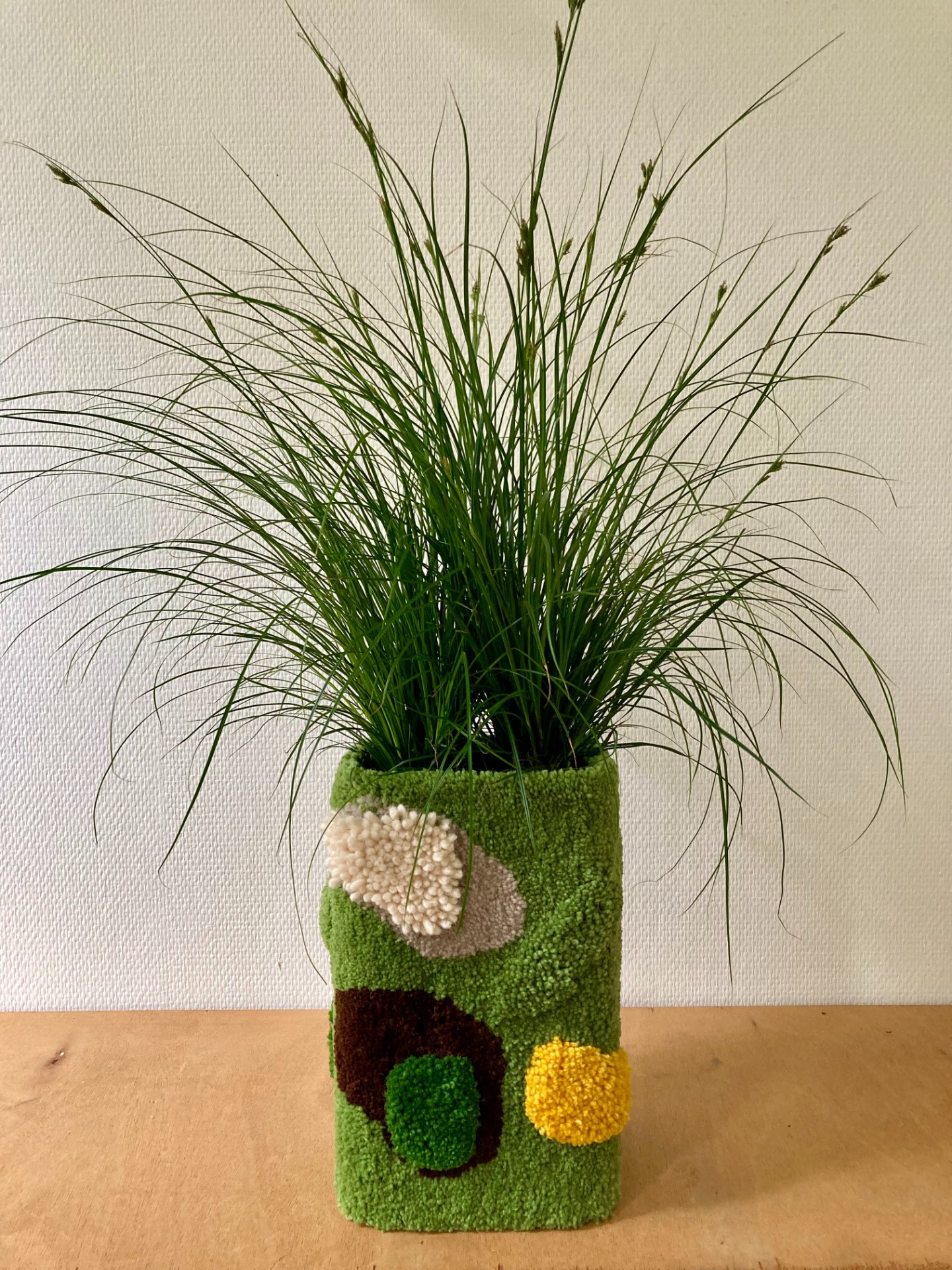 À l’occasion de la neuvième édition de FuelBox, nous présentions une installation où illustration et tufting dialoguent dans un espace entièrement repensé. Nous avons peint les murs d’un bleu profond pour créer une atmosphère enveloppante, presque souterraine, propice à la contemplation. Au sol, une série de tapis évoquant herbes, mousses et textures végétales invitaient à une immersion sensorielle. Un paysage textile à parcourir du regard ou du pas, en écho aux œuvres suspendues aux murs.