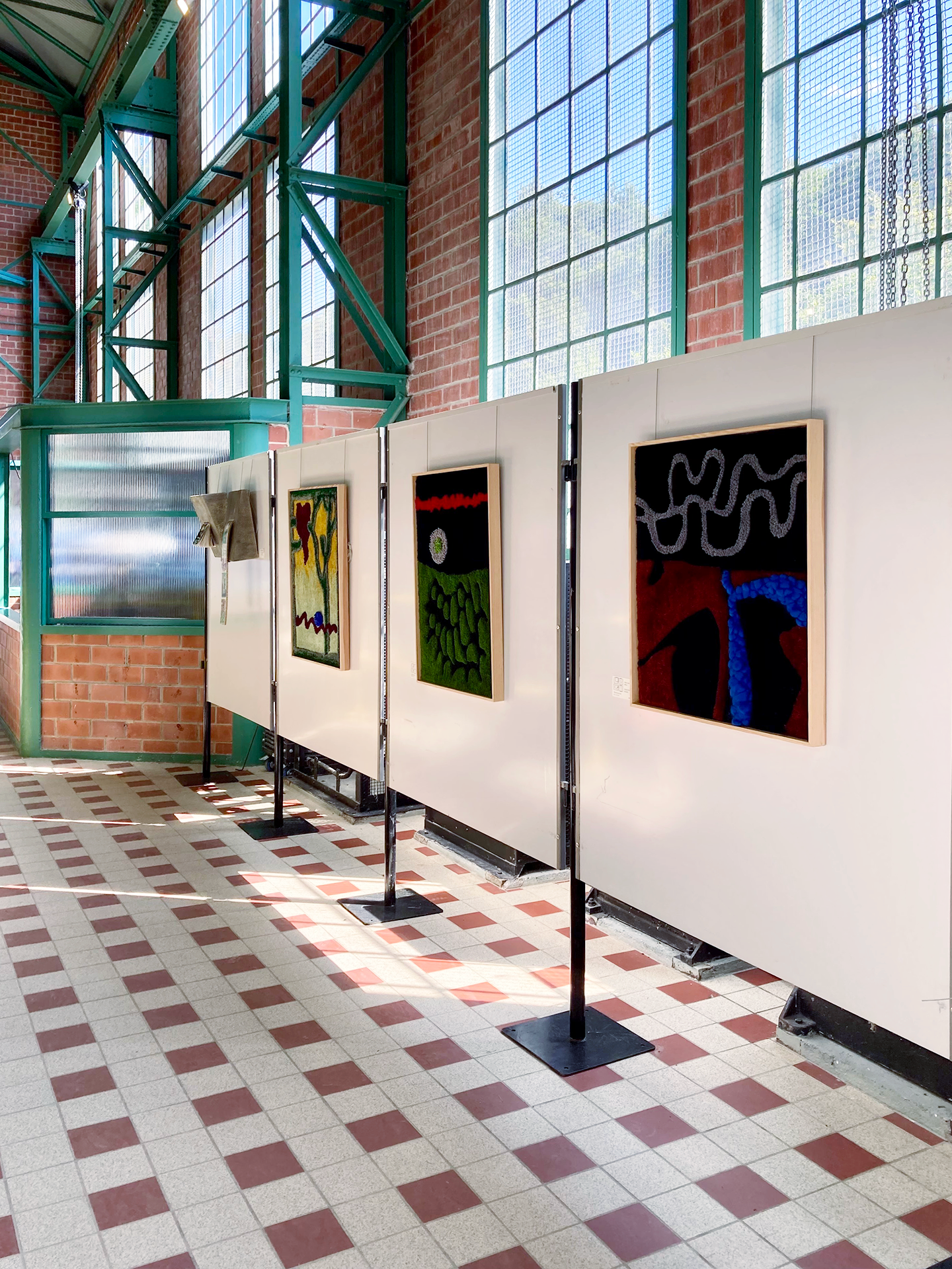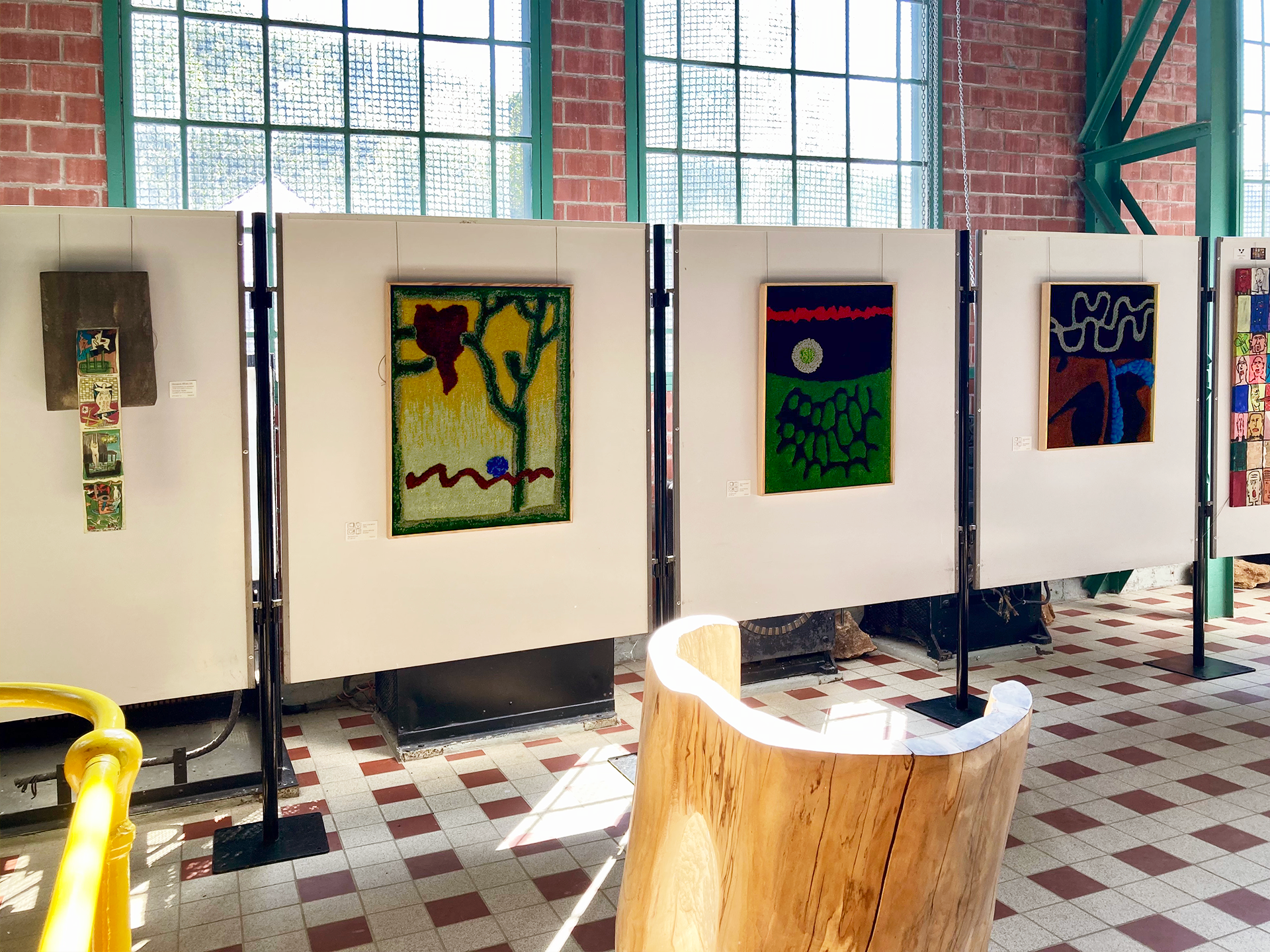 Dans le cadre de Konscht am Minett, nous présentons une série de tapis encadrés où formes abstraites et textures végétales se côtoient. Inspirées par des motifs organiques et des trajectoires imaginaires, ces compositions en tufting explorent la matérialité du fil et la densité des couleurs. L’exposition prend place dans un ancien site minier du sud du Luxembourg, au cœur du patrimoine industriel du Minett Park. Le dialogue entre la douceur textile et l’architecture brute de la mine réactive l’histoire des lieux tout en invitant à une contemplation sensorielle.